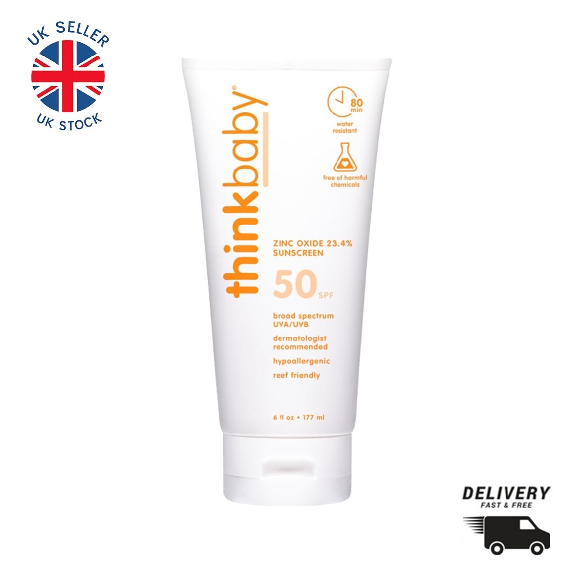 Thinkbaby SPF 50+ Baby Sunscreen, 6oz – Water Resistant, Natural & Vegan Sun Pro