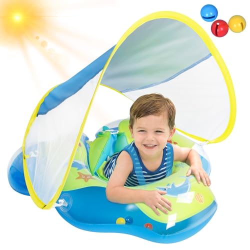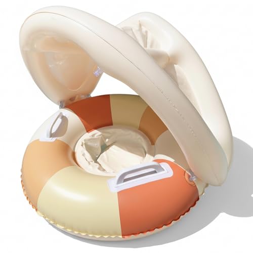 Gemuseeee Baby Pool Float with Canopy, Inflatable Toddler Pool Floats with Sun Shade & Secure Seat - Baby Swim Float for Infants Toddlers 0-4 Years, with Canopy, with