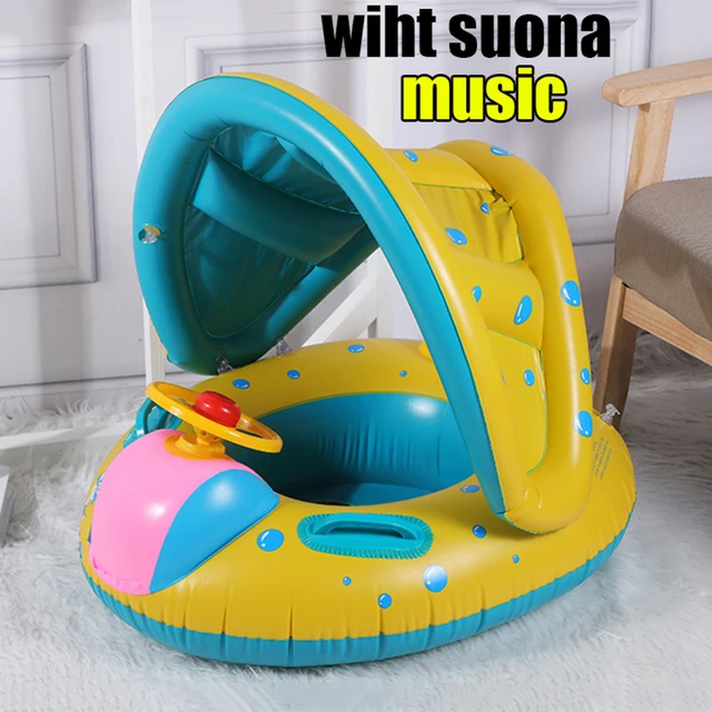 Infant Baby Inflatable Swim Float Ring Seat with Sunshade Pool Water Toy