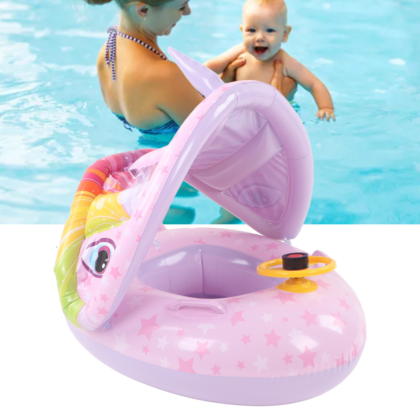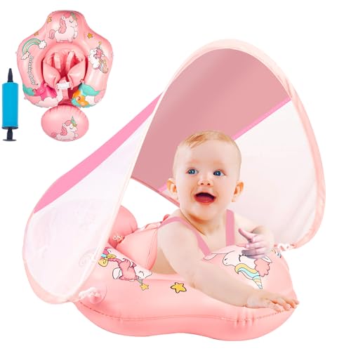 Baby Inflatable Baby Swimming Float Pink Baby Pool Float with Canopy Safety Seat 0-6-12 Months Infant Toddler Newborn Baby Swim Float Swimming Ring for Baby Girl 6-12-36 Months Pink Unicorn
