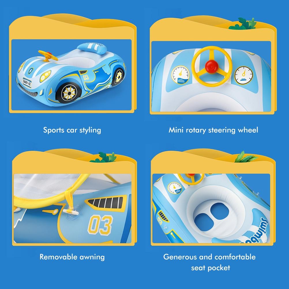 Swimbobo Toddler Pool Float Inflatable Car Baby Swim Float with Adjustable Sun Canopy and Safety Seat Pool Toys for Kids 3 Years Old + (Blue Sports Car)