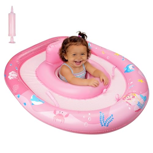 (pink with foot pads)Mambobaby New Non-Inflatable Baby Swimming Float Seat Float Baby Swimming Ring Pool Toys Fun Accessories