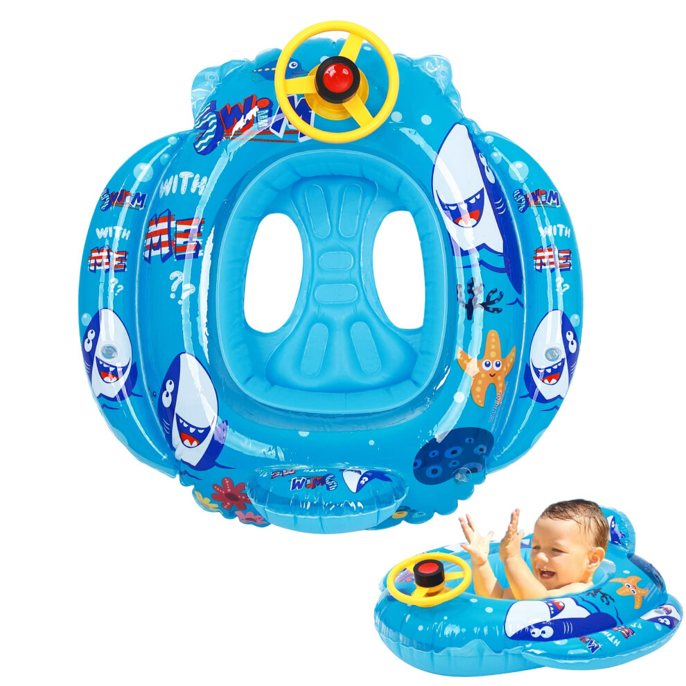 Inflatable Baby Swimming Float Car Seat with Steering Wheel and Backrest Toddler Pool Swimming Ring for Babies Kids Summer Pool Beach Water Toy