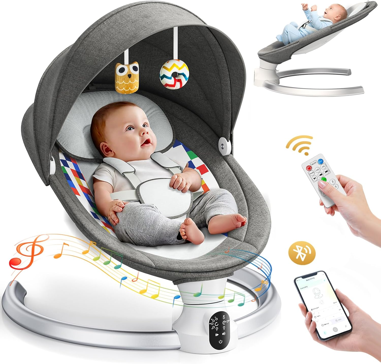 Ixdregan Baby Swing Chair,Electric Baby Bouncer with 5 Swing Amplitudes,Electric Baby Rocker,Baby Bouncer with Mobile App Control and Remote Control Blueteeth, Portable Newborn Rocking