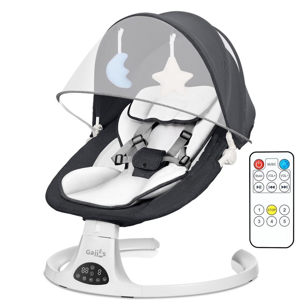 Electric Baby Swing Chair from Birth, Bluetooth Bouncer with 5 Swing Speed, 3-Stage Timer and Remote Control, Portable Baby Rocking Rocker Seat Touch Screen Music Speaker Grey
