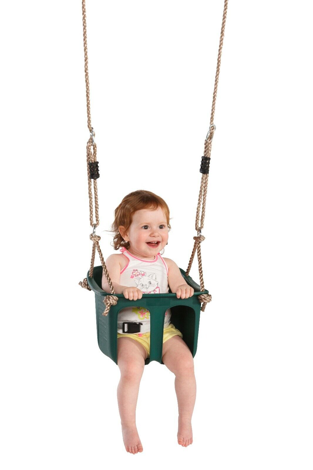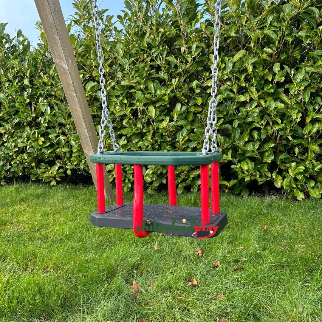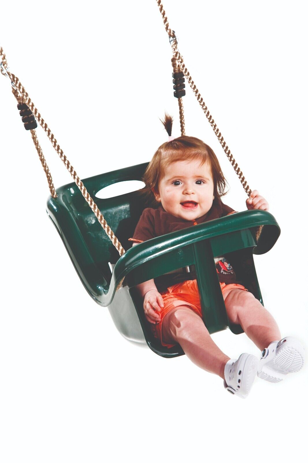 DARK GREEN HIGH BACK BABY SWING SEAT WITH 3 ATTACHMENT POINTS T-BAR - FREEPOST
