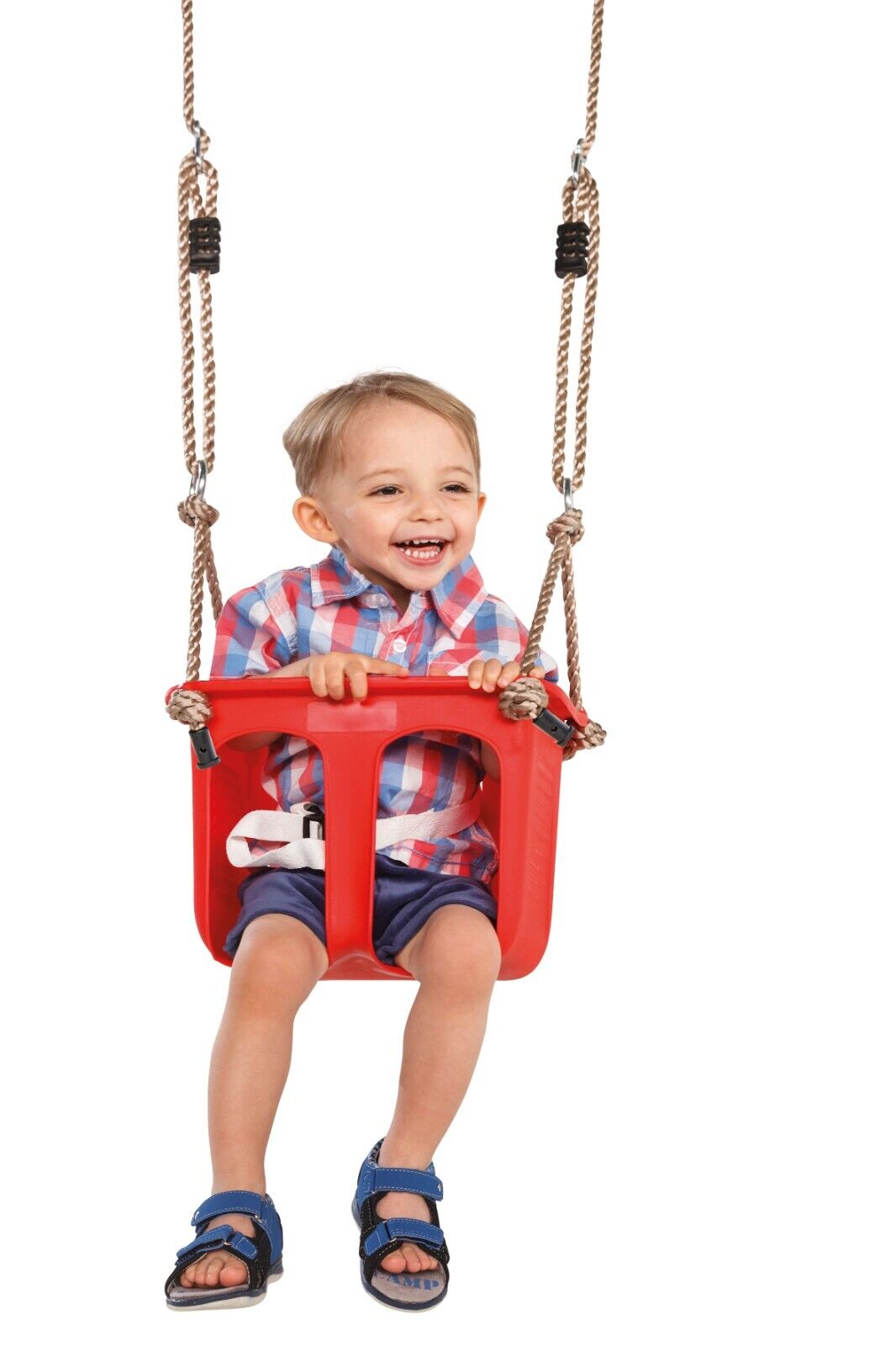 BABY BUCKET SWING SEAT RED WITH SAFETY BELT AND ANTI-TILT AND ANTI-SLIP KNOTS