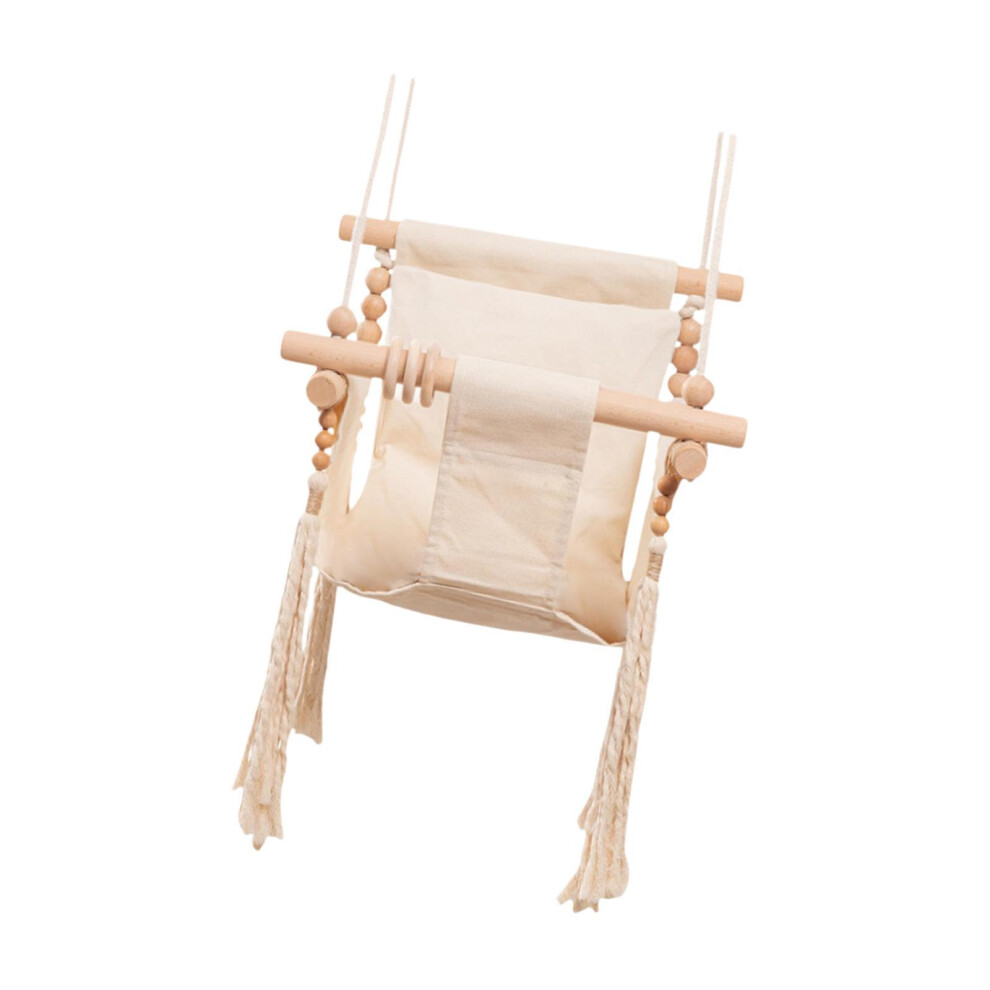 Secure Baby Swing Seat with Safety Belt - Baby Canvas and Wooden Swing Chair with Lace D?cor Cushion - Hanging Indoor Swing for Infants & Baby Swing O