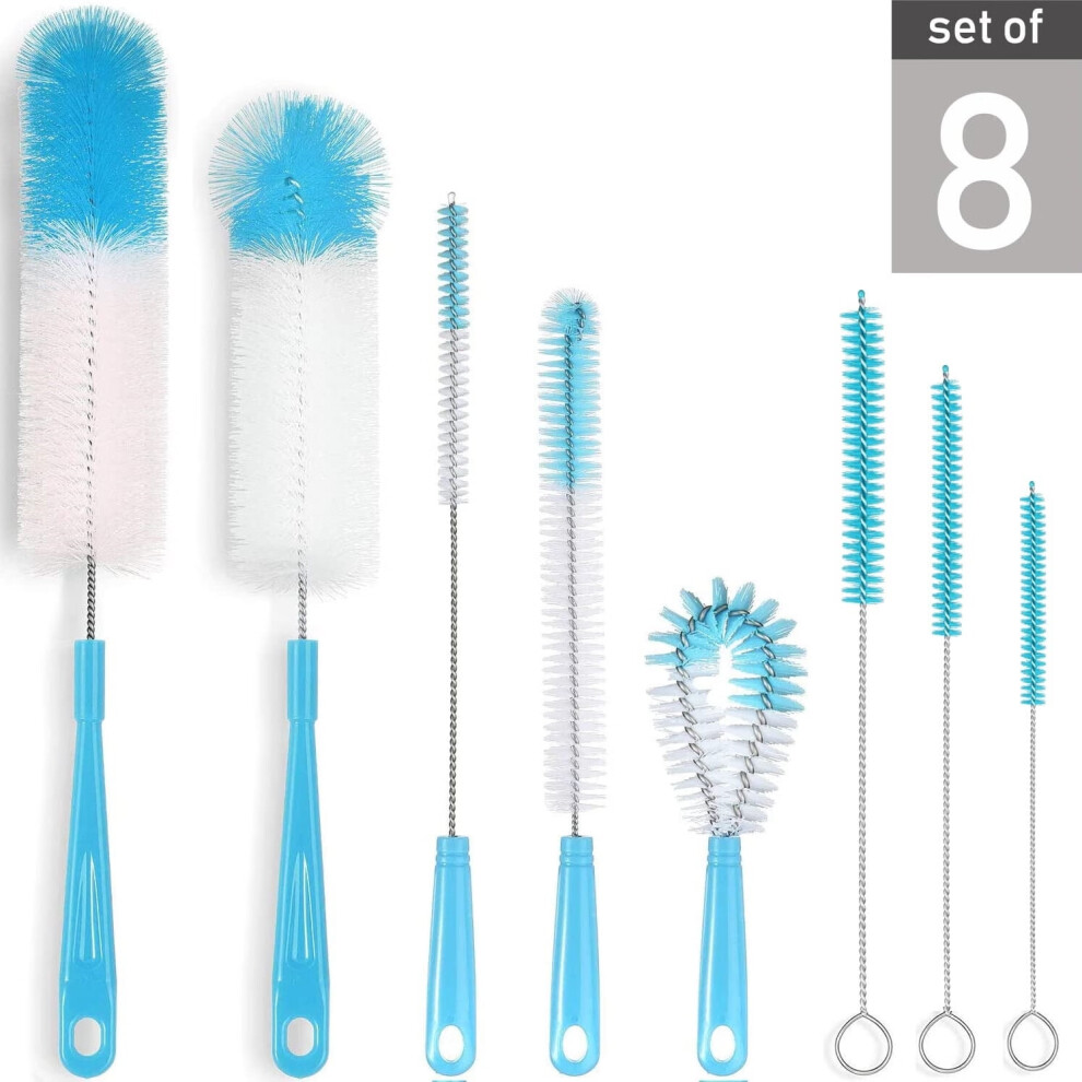 8-Pack Bottle Cleaning Brush Set - Long Handle Baby Bottle Cleaner Compatible with Wine, Beer Bottles, Thermos, Hummingbird Feeder, Sports Well,