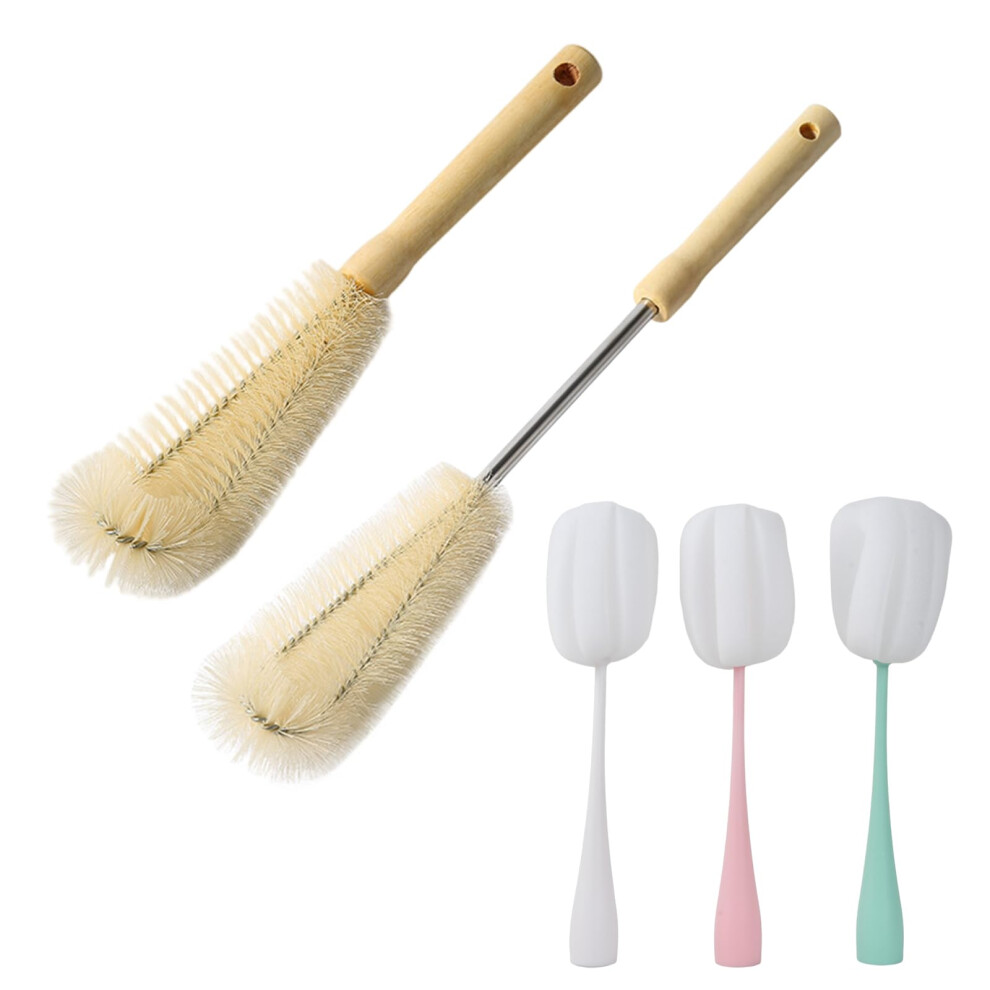 5Piece Bottle Brush Set LongHandled Nylon Brush Sponge Brush For Baby Bottles Thermos Flasks Coffee Cups Wine Glasses