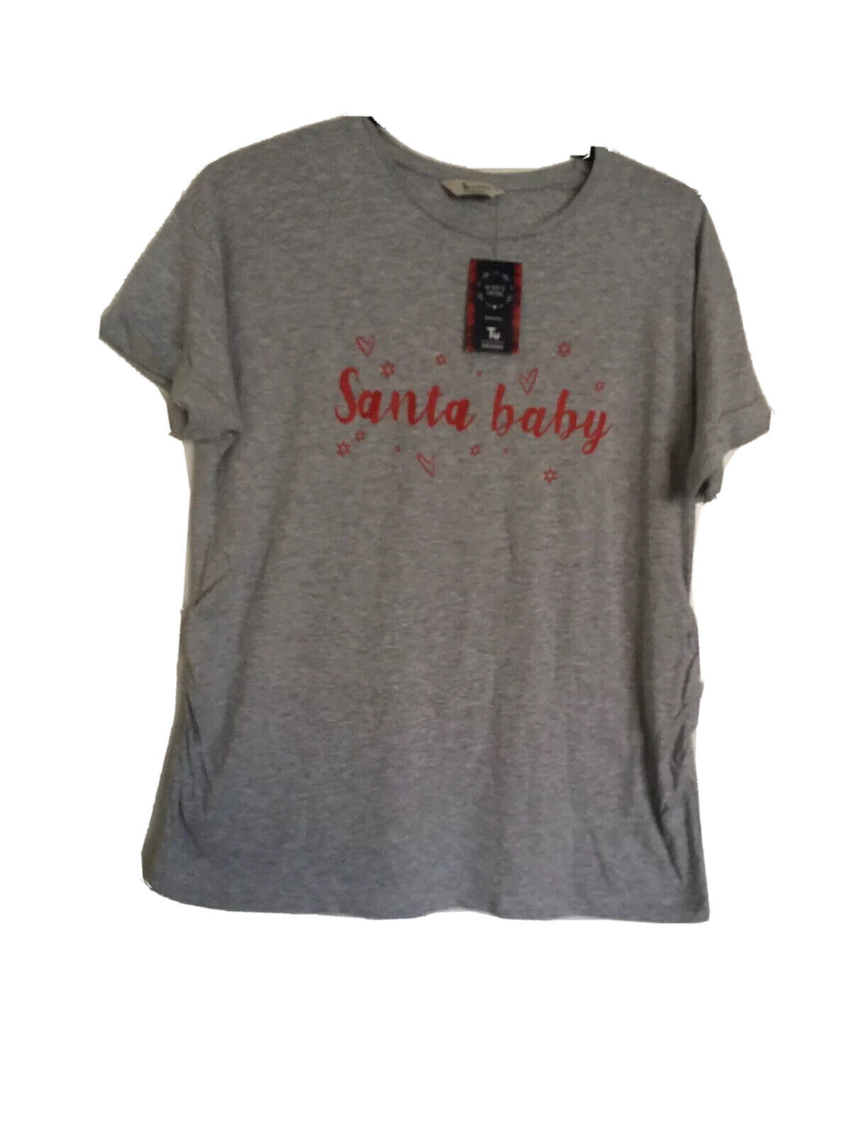 TU GREY MARL MATERNITY 'SANTA BABY' T-SHIRT TOP XMAS CHRISTMAS SIZE 16 BNWT NEW