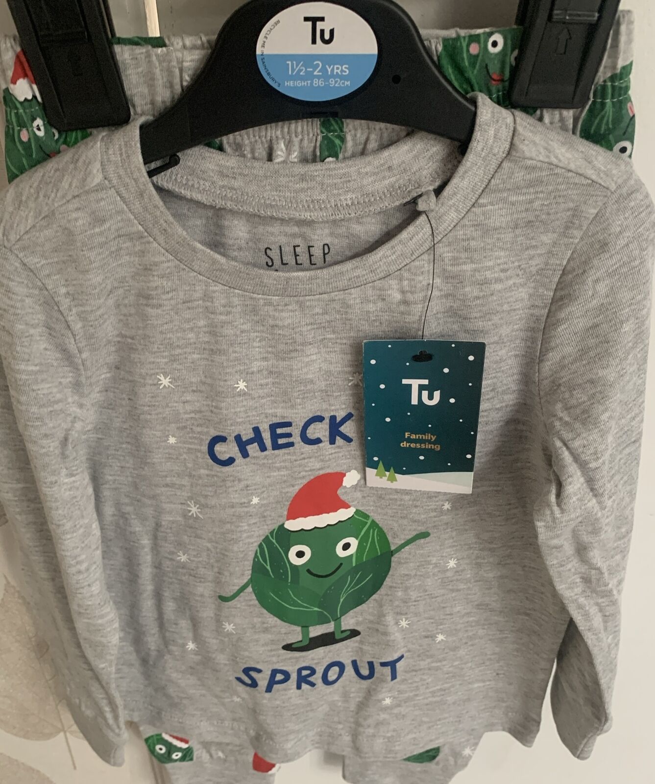 BABY BOYS GIRLS TU ' CHECK ME SPROUT ' XMAS CHRISTMAS PJS PYJAMAS 18-24 MTH BNWT