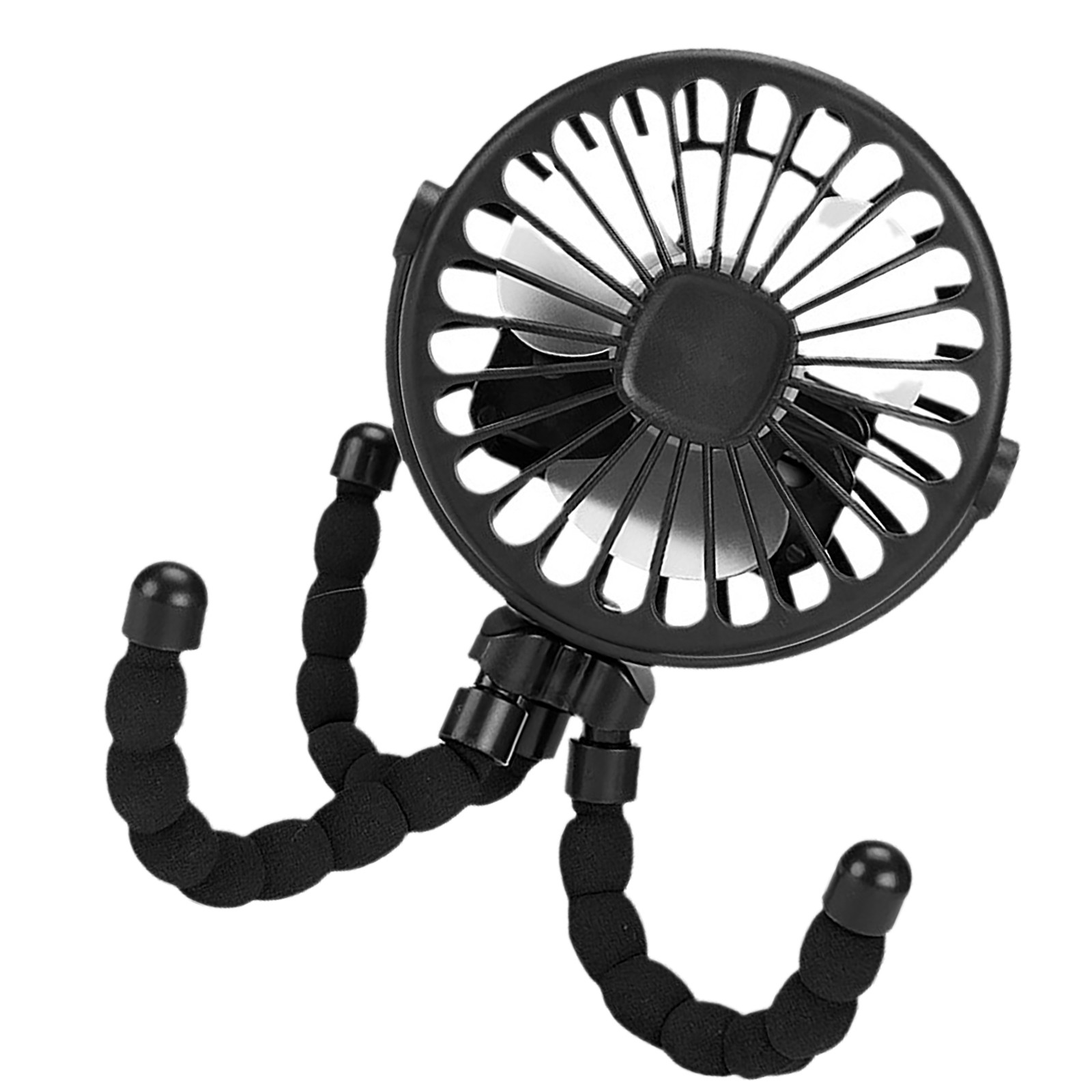 Black Stroller Fan Battery Operated Flexible Tripod Clip On Fan Silent Baby TU