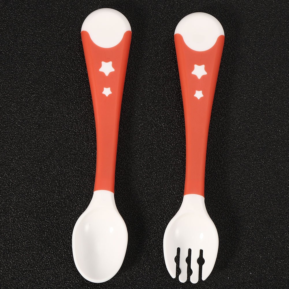 (Red)2Pcs Portable Infant Feeding Food Fork Spoon NonSlip Baby Tableware Se TU