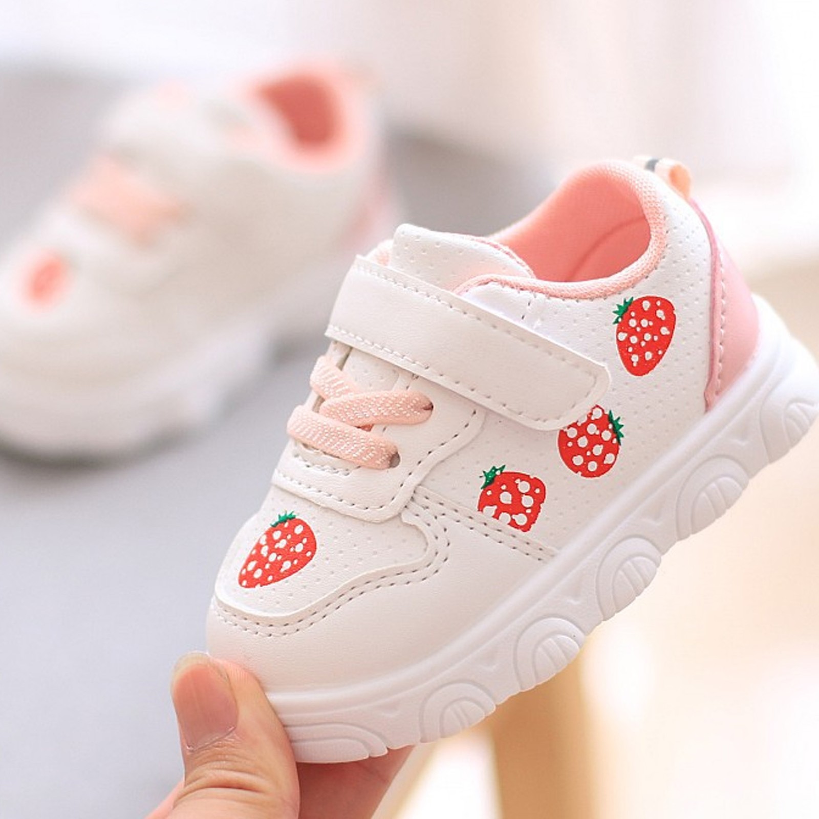 12cm Baby Shoes Strawberry Pattern Skid Resistance Soft Baby Walking Shoes TU
