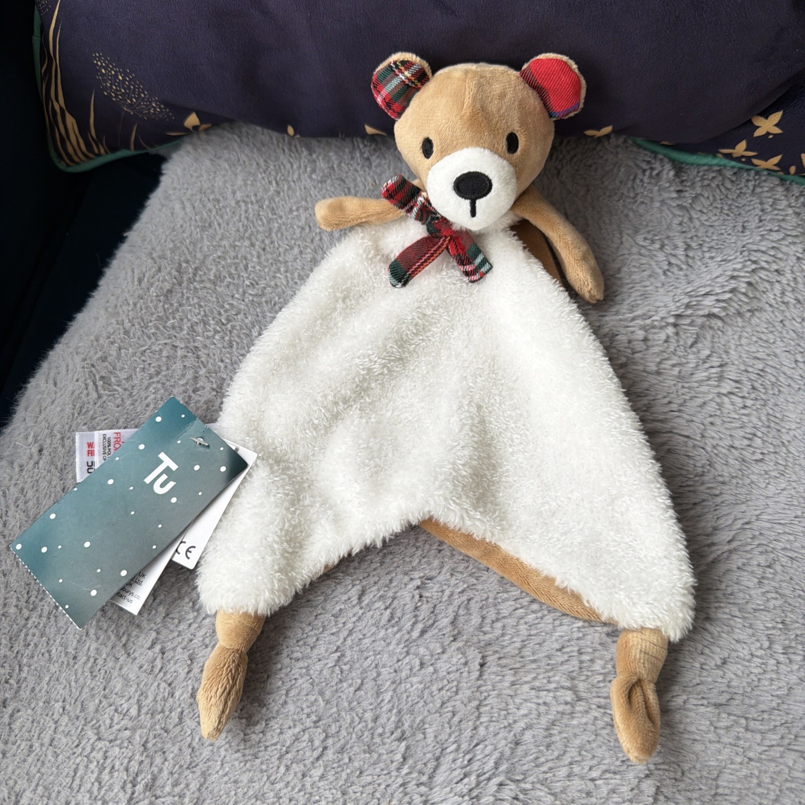 TU Sainsburys Tartan ears Brown Beige Teddy Bear Baby Comforter Blanket Soother