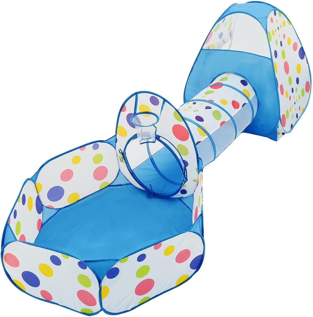 3 in 1 Kids Play Tent with Tunnel Baby Ball Pit Foldable Pop up Tent and Tunnels Playhouse Toys with Portable Storage Bag for Baby Indoor & Outdoor Tents Games, Boys Girls Children Toddler Gifts(Blue)