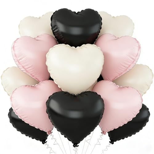 Black Beige Pink Heart Balloons,18 Inch Baby Pink Beige Heart Shape Balloons,12PCS Foil Heart Balloon Helium for Birthday Party Bridal Engagement Wedding Anniversary Baby Shower Valentines Decor