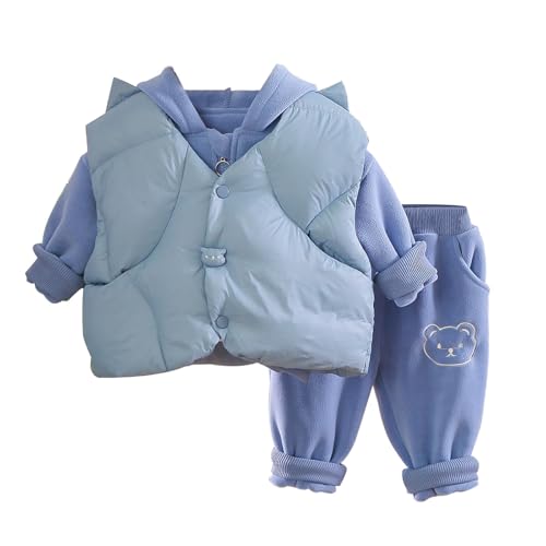 Ikevan - Boys Girls Shirts Fall Winter Outfits, Toddler Baby Girls Hooded Vest Winter Pants (Blue, 6-12 Months)