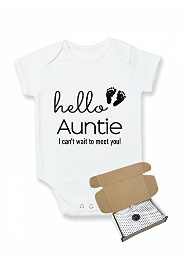 allaboutthebump Hello Auntie | Baby Announcement Vest Bodysuit (Pregnancy Reveal) - Gift Wrapped with Box