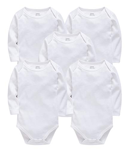 kavkas Long Sleeve Newborn Bodysuits Plain Baby Vest Undershirt Cotton Baby Clothes for Boys and Girls 5 Pack (12-18M) White