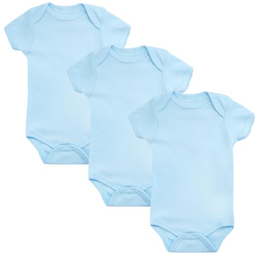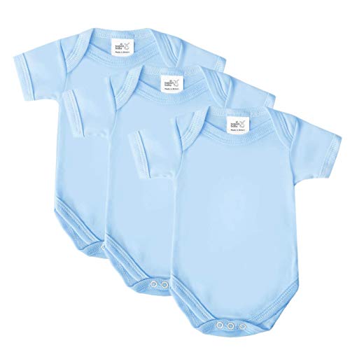 Baby Vests, Baby Bodysuits Short Sleeved, UK Brand, 3 Pack, Blue, 3-6 Months