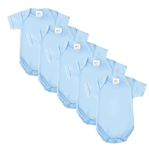 Baby Bodysuits, Baby Vests, Newborn Vests, Cotton Short Sleeved Newborn Bodysuit, British Made for Boys or Girls, 5 Pack, Blue, 0-3 Months