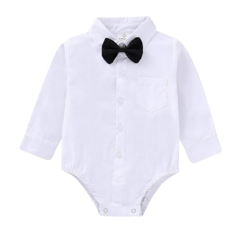OPAWO White Baby Shirt Soft 100% Organic Cotton Long Sleeve Baby Vests Tie and Shirt Unisex Baby Bodysuit for Wedding Suit Christening Outfit Birthday Party Photo Shoot (White L,9-12 Months)