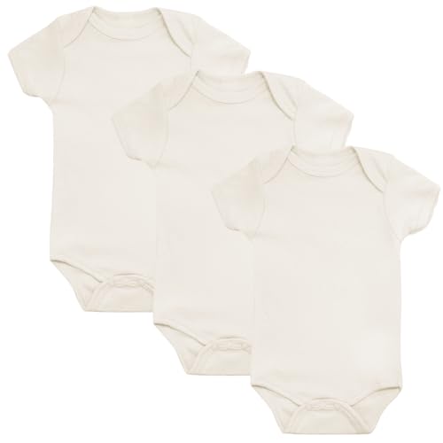 Baby Vests, Baby Bodysuits Short Sleeved, UK Brand, 3 Pack, Cream, 0-3 Months