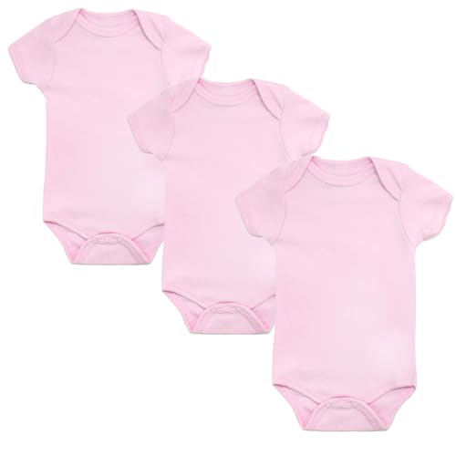 Baby Vests, Baby Bodysuits Short Sleeved, UK Brand, 3 Pack, Pink, 0-3 Months