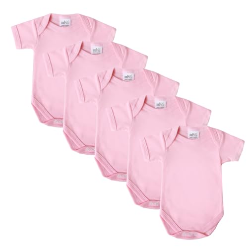 Baby Bodysuits, Baby Vests, Newborn Vests, Cotton Short Sleeved, British Made for Boys or Girls, 5 Pack, Pink, Newborn
