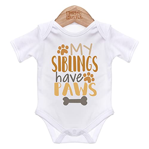 ART HUSTLE My Siblings Have Paws Baby Grow for Baby Girl or Boy, Cute and Comfortable Baby Vests, Made of Premium Ring-Spun Cotton, Machine-Washable Baby Clothing, 0-3 Months White