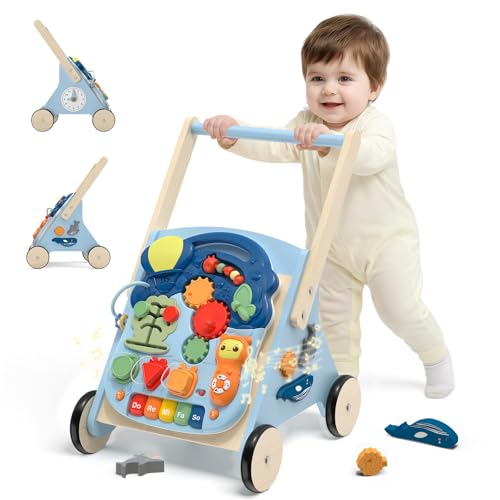 Wiqins Wooden Baby Push Walker, 10-in-1 Baby Walker Toys with Wheels for Toddlers 18 Months, Detachable Montessori Activity Board Toy & Storage for 1 Year Old Boys Girls Learning to Walk