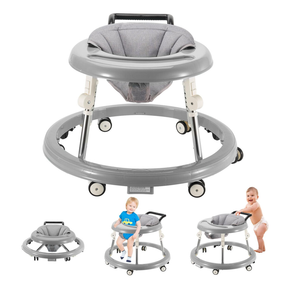 Baby Walker with Wheels, Activity Center with Mute Wheels Anti-Rollover, 5-Position Height Adjustable Foldable Baby Walker(Black)