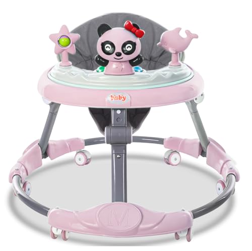 Multifunctional Foldable Baby Walker with 6 Adjustable Heights, Activity Center, Portable Music, Toys, Food Tray & Silent Wheels - Baby Walker for Boys & Girls 6 Months + - Easy Fold (Pink)