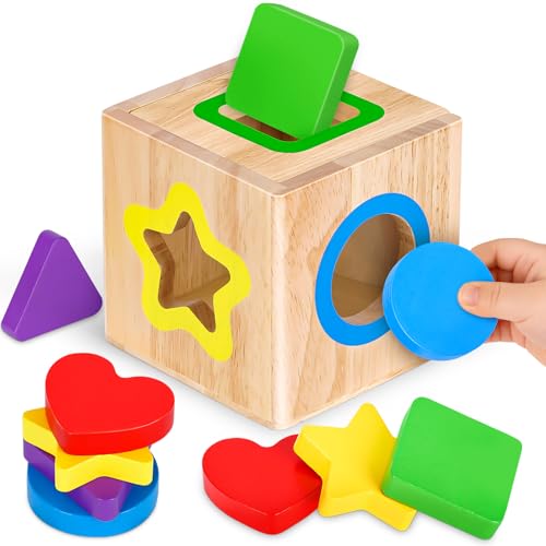 Toddler Montessori Toys for 1 2 Year Old Boys Girls, Shape Sorter Wooden Baby Toys Gifts for 1 2 3 Year Old Girl Boy, Activity Cube Sensory Baby Toy 6 to 12 Months Colour Sorting Stacking for Kids