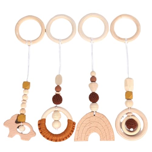 4Pcs Hanging Toys for Baby Gym, Wooden Baby Hanging Toys, Children's Toy Crib Wooden Rattle Toy Bed Pendant for Stroller Crib Bed Newborn