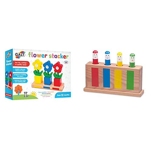 Galt, Flower Stacker, Baby Sensory Wooden Stacking Toys, Ages 12 Months Plus Toys, Pop-Up Toy, Wooden Baby Toy, Ages 12 Months Plus