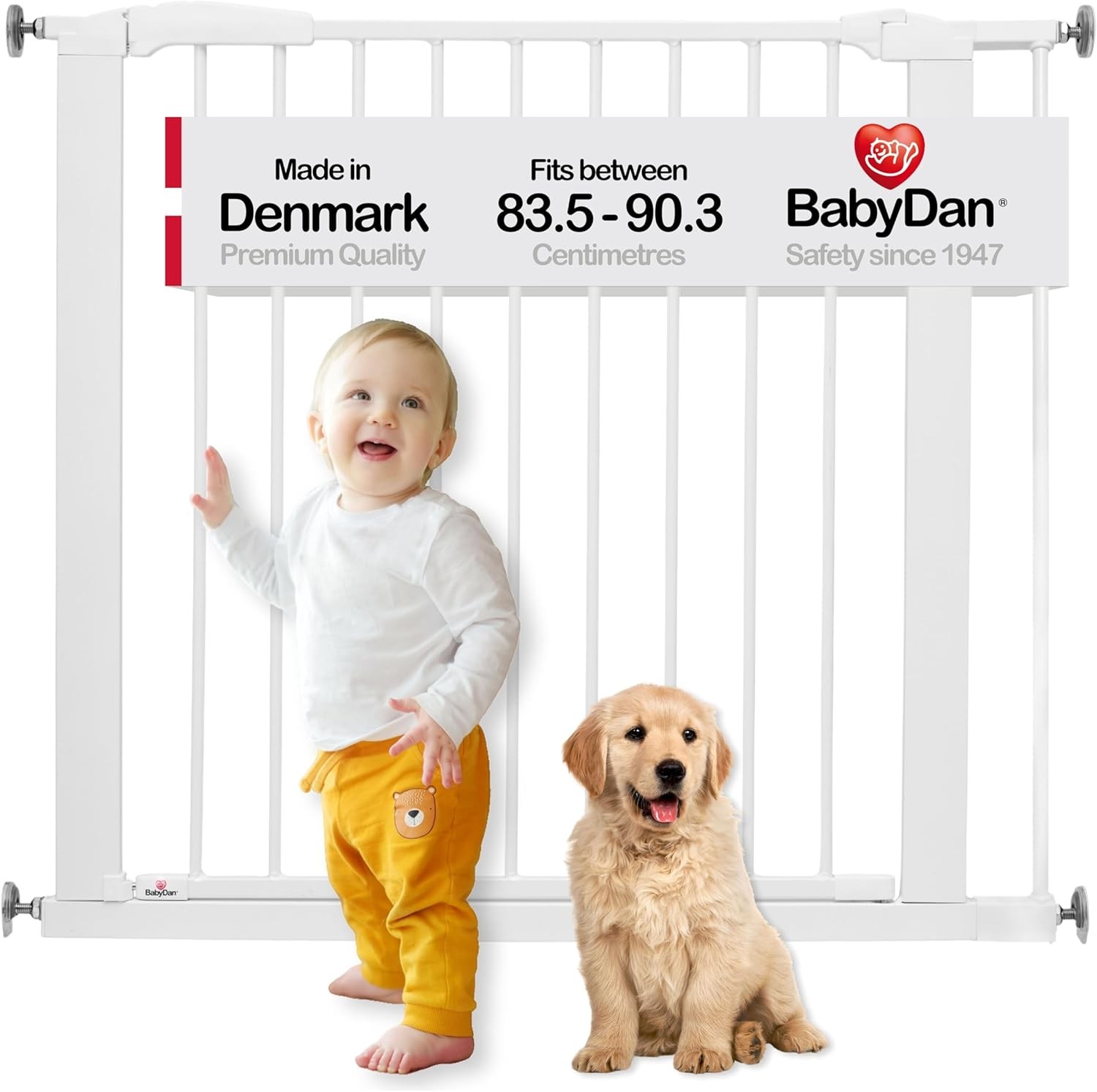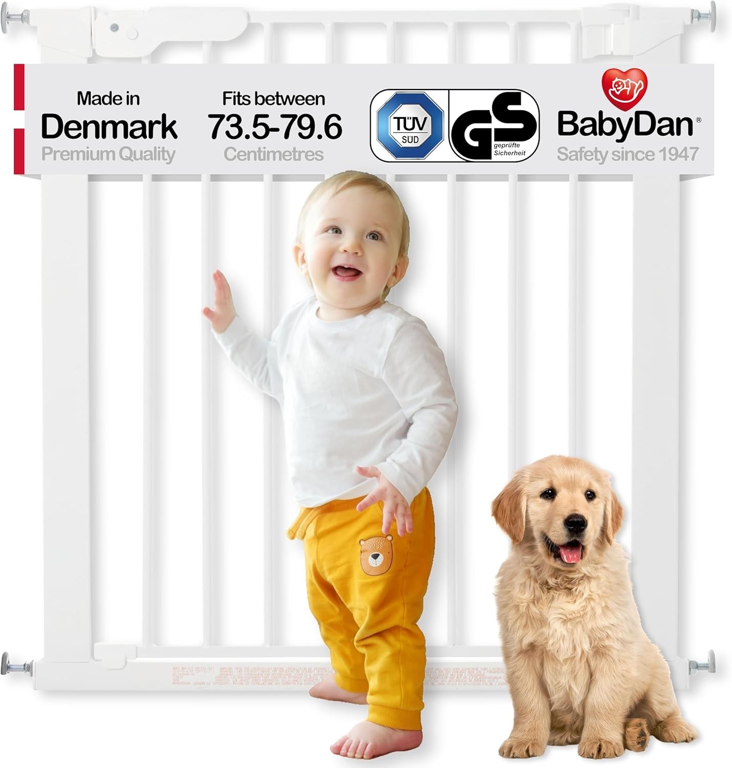 BabyDan Perfect Close - Pressure Fit Stair Gate, 77.3-97.1 cm, White, Made in Denmark - Baby & Pet Gate