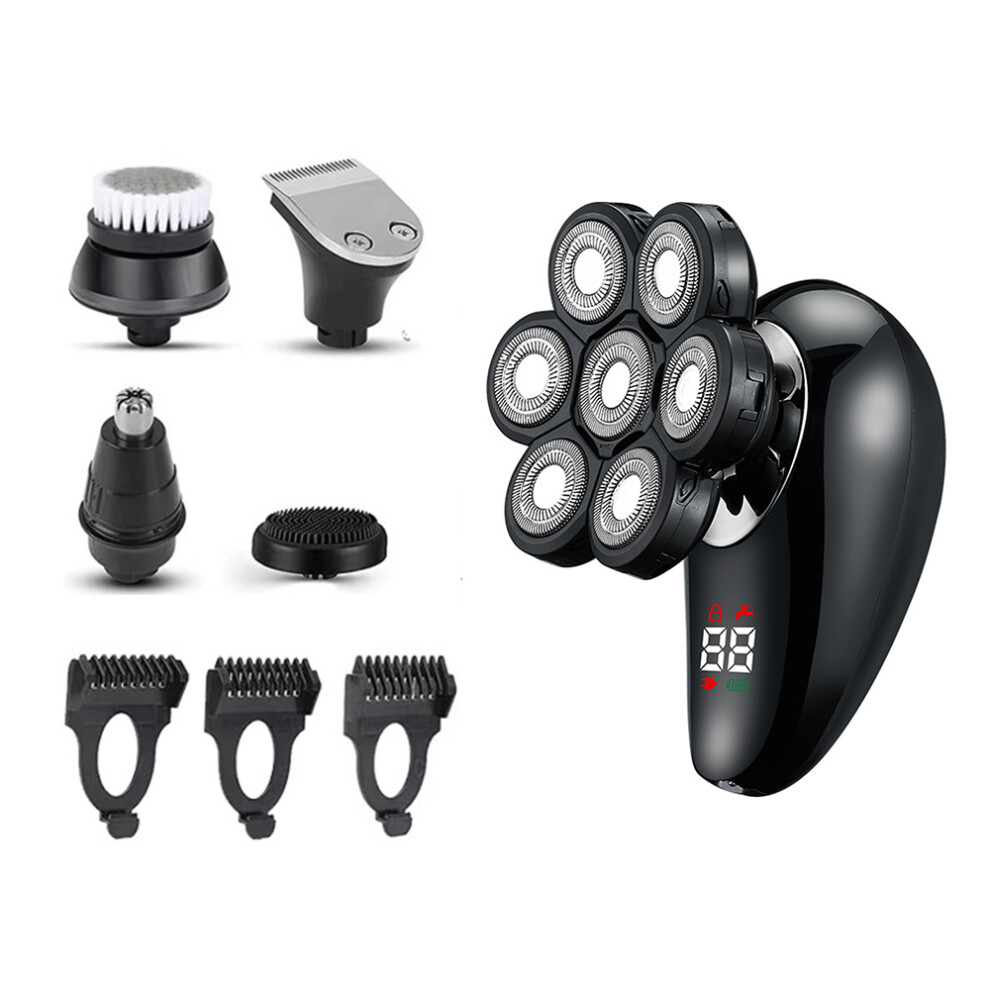 Detachable Head Shavers, 8-in-1 Multifunctional Grooming Kit, 7D Electric Shaver for Bald Men, Flexible 7D Floating Head, Rechargeable, At Least 90