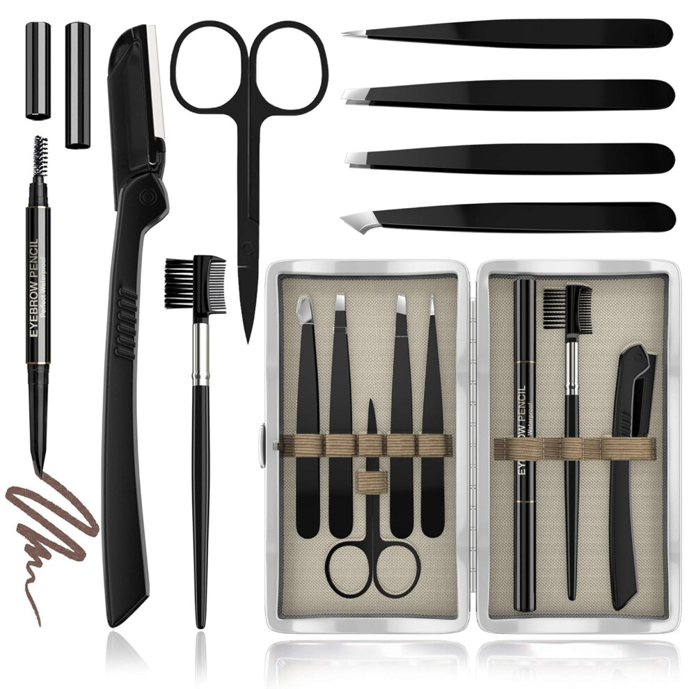 Kit, 8in1, Multipurpose Eyebrow Tweezers Kit, Eyebrow Shaping, Grooming and Trimming Kit, Includes Razor, Pencil, Scissors and Brush with Comb