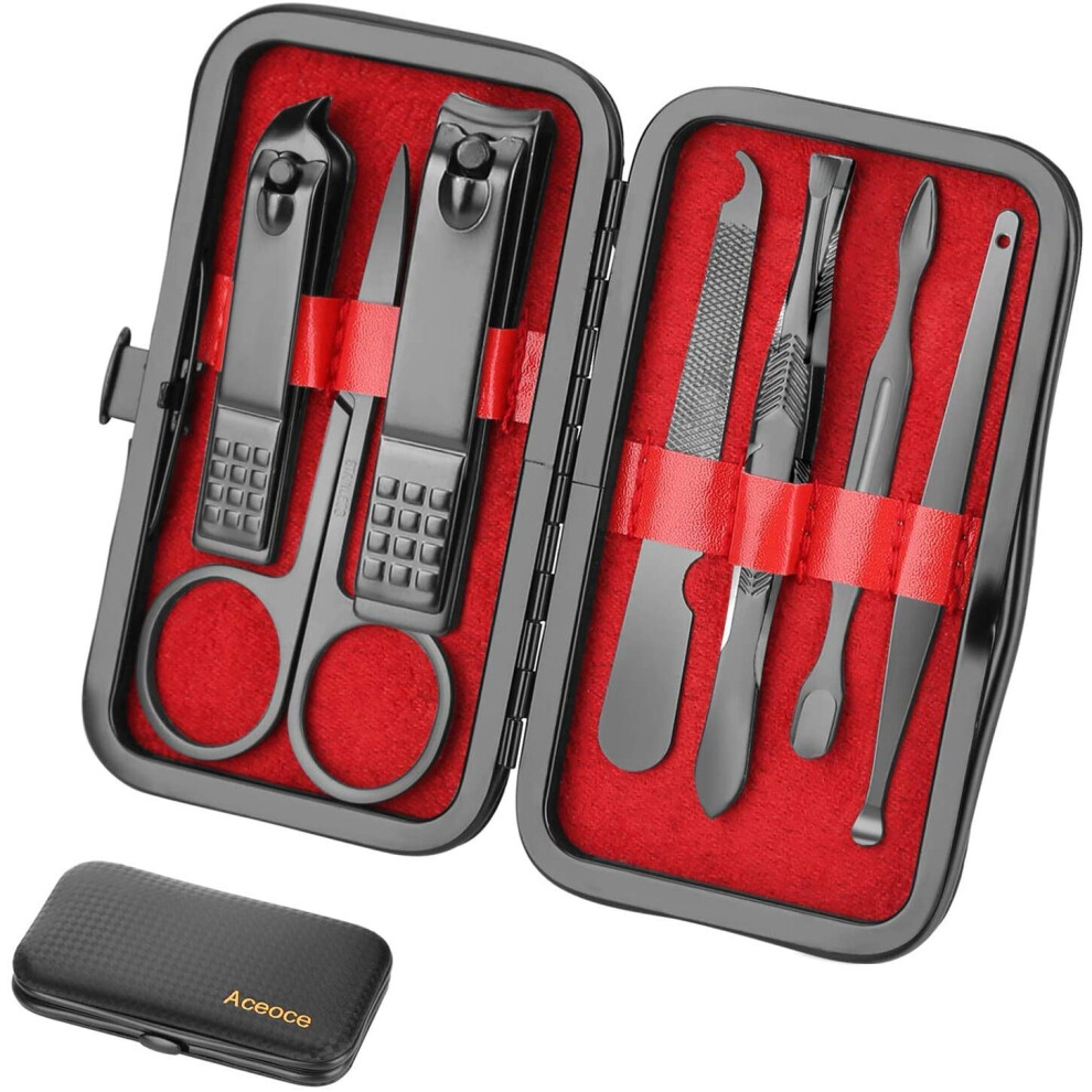 Men's Grooming Kit 8in1 Stainless Steel Manicure Set with Nail Clippers and Pedicure Tools for Travel