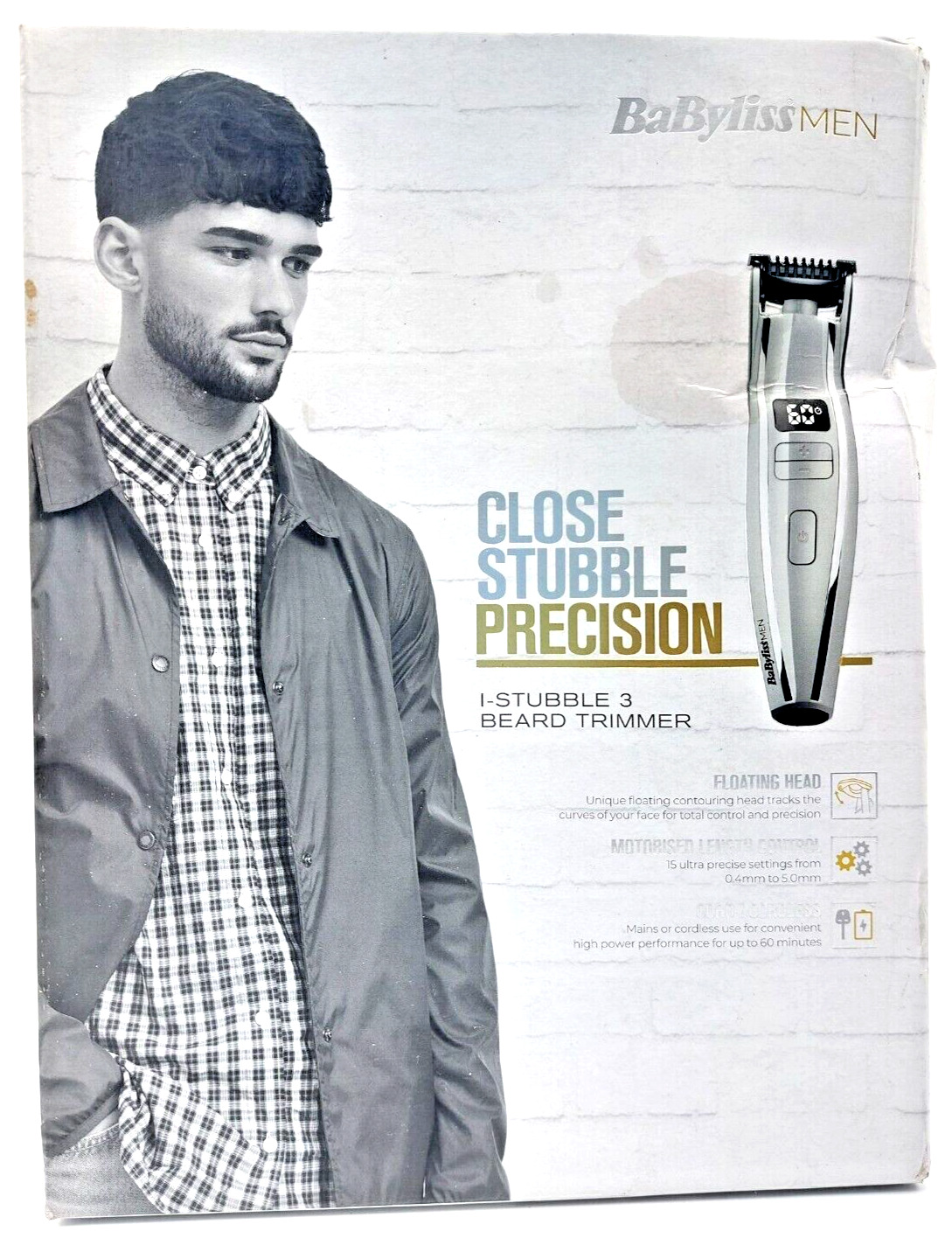 BaByliss Men Beard Trimmer I-Stubble 3 Precision Trimmer Floating Heads - Silver