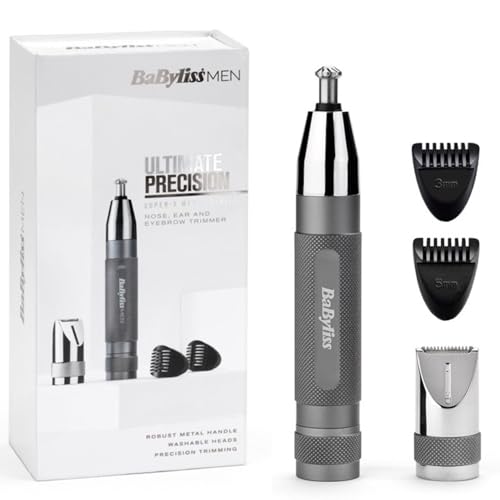 Explore our collection of BaByliss nose trimmers, including the BaByliss Men Trimmer E652E, BaByliss E650E, BaByliss FX7020E, and BaByliss Super X Metal 7066U. These trimmers offer a range of features, from waterproof designs and multitrimmer capabilities to battery-powered operation. Available in various colours, they are perfect for trimming your beard, mustache, ears, nose, and eyebrows. Compare and discover the best BaByliss nose trimmer for your grooming needs.