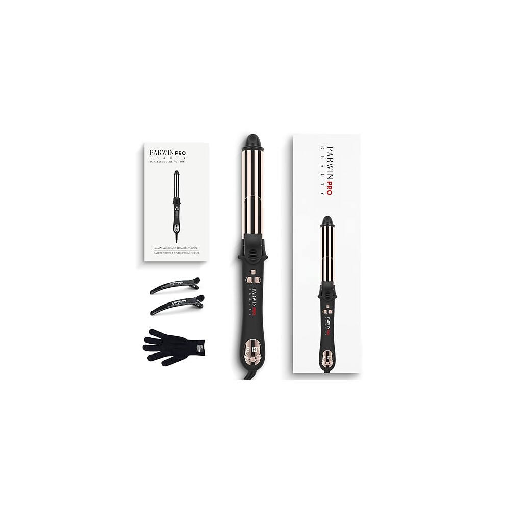 360 Rotating Automatic Hair Curler, PARWIN PRO BEAUTY 32MM Hair Curling Wand, Nano Titanium Coating Curling Tongs, Rotating Curling Iron with LCD