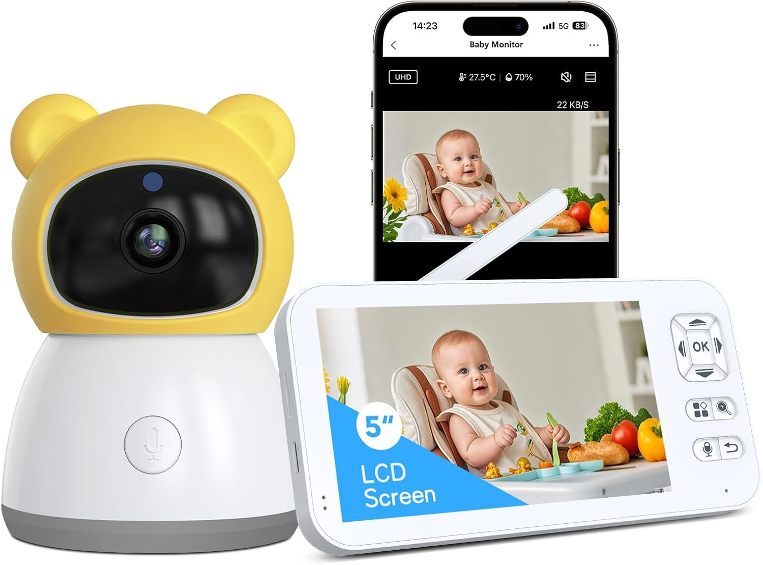 ELRO Baby BC3000 Babyphone Royale-Babyfon-mit 12,7 cm Touchscreen Monitor HD-und App, 1 Stück (1er Pack)