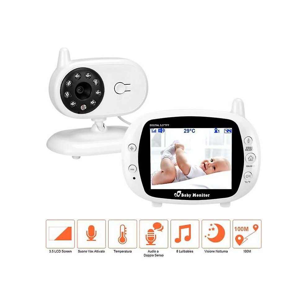 Babyphone Video Wireless Multifunction 3.5 "lcd Color Video Two-way Audio, Night Vision, Temperature Monitoring