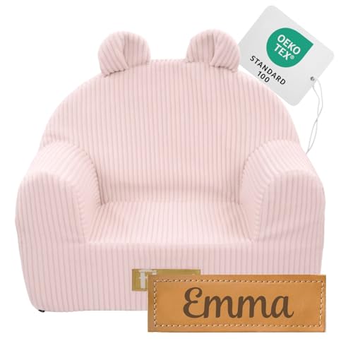 Flumi personalised high chair - Baby armchair - high chair for children's room playroom - armchair with engraving child name (pink corduroy)