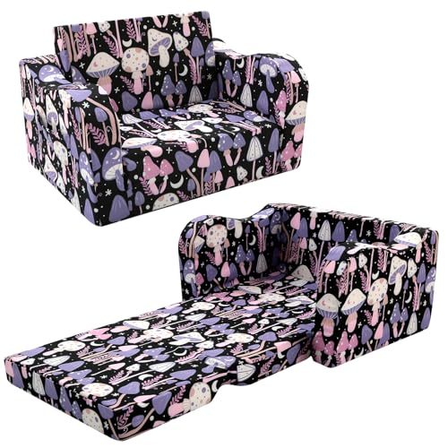 MeMoreCool Kids Sofa, Foldable Chair Comfy for Toddlers 1-3, Fold Out Couch 2-in-1 Sofa Bed for Playroom, Baby Lounge ArmChair for Boys & Girls, Mushroom Pattern