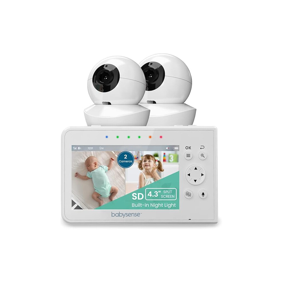 Babysense Video Baby Monitor with 2 Cameras, 4.3 Inch No Wifi Baby Monitor with 480p Split Screen, White Noise, Night Vision, Adjustable Night Light